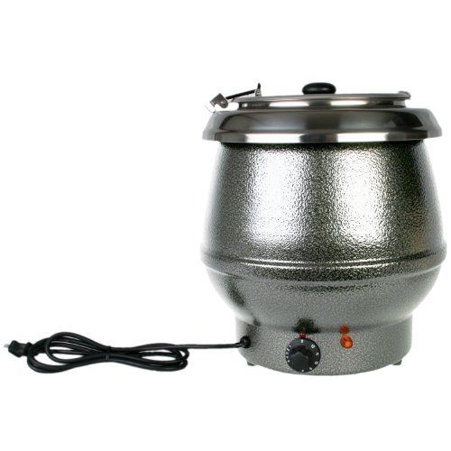 Excellante 12 quart stainless steel soup warmer-silver color. Keep soup at the proper temperature, ready to serve with this stainless steel soup warmer. The epoxy coated aluminum body is painted silver to accommodate classical tastes. NSF listed. 600-watt commercial soup warmer with 12-quart capacity Durable stainless-steel construction w
